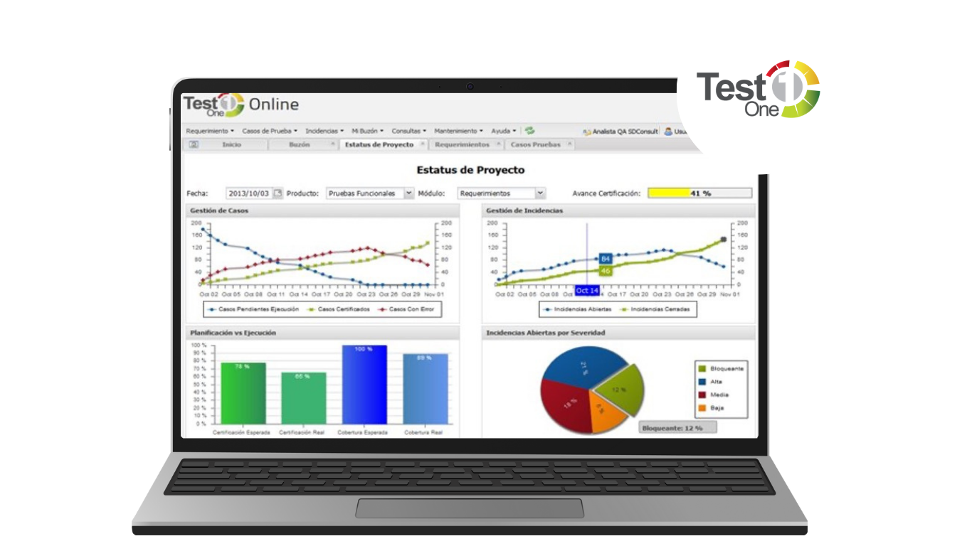 TestOne es la solución integral desarrollada por SDConsult, para gestionar de forma eficiente el ciclo completo de pruebas de software. Basado en las mejores prácticas internacionales del ISTQB, permite un control preciso de los requerimientos, pruebas y defectos.